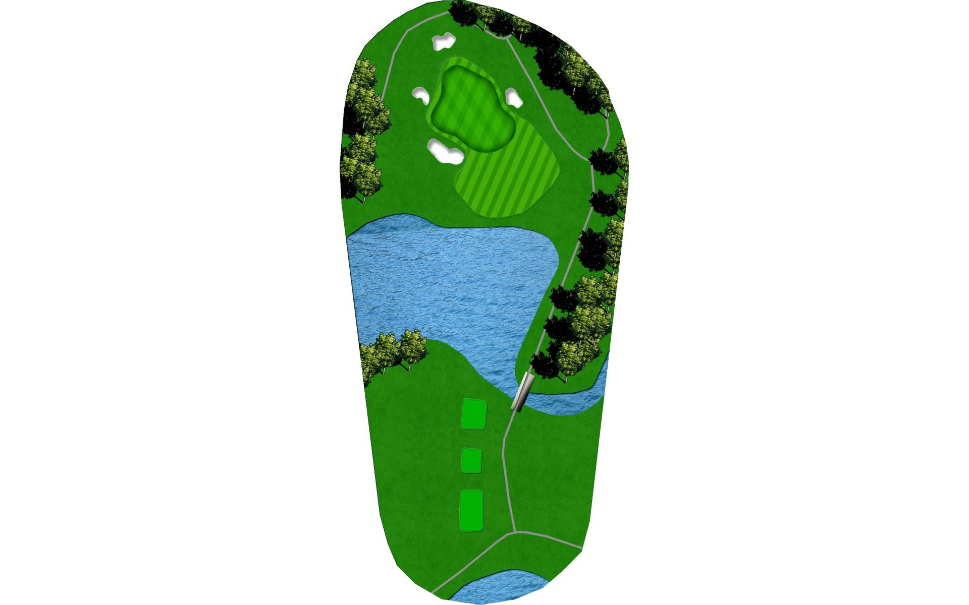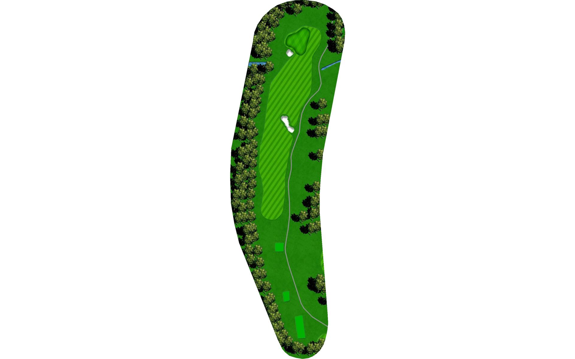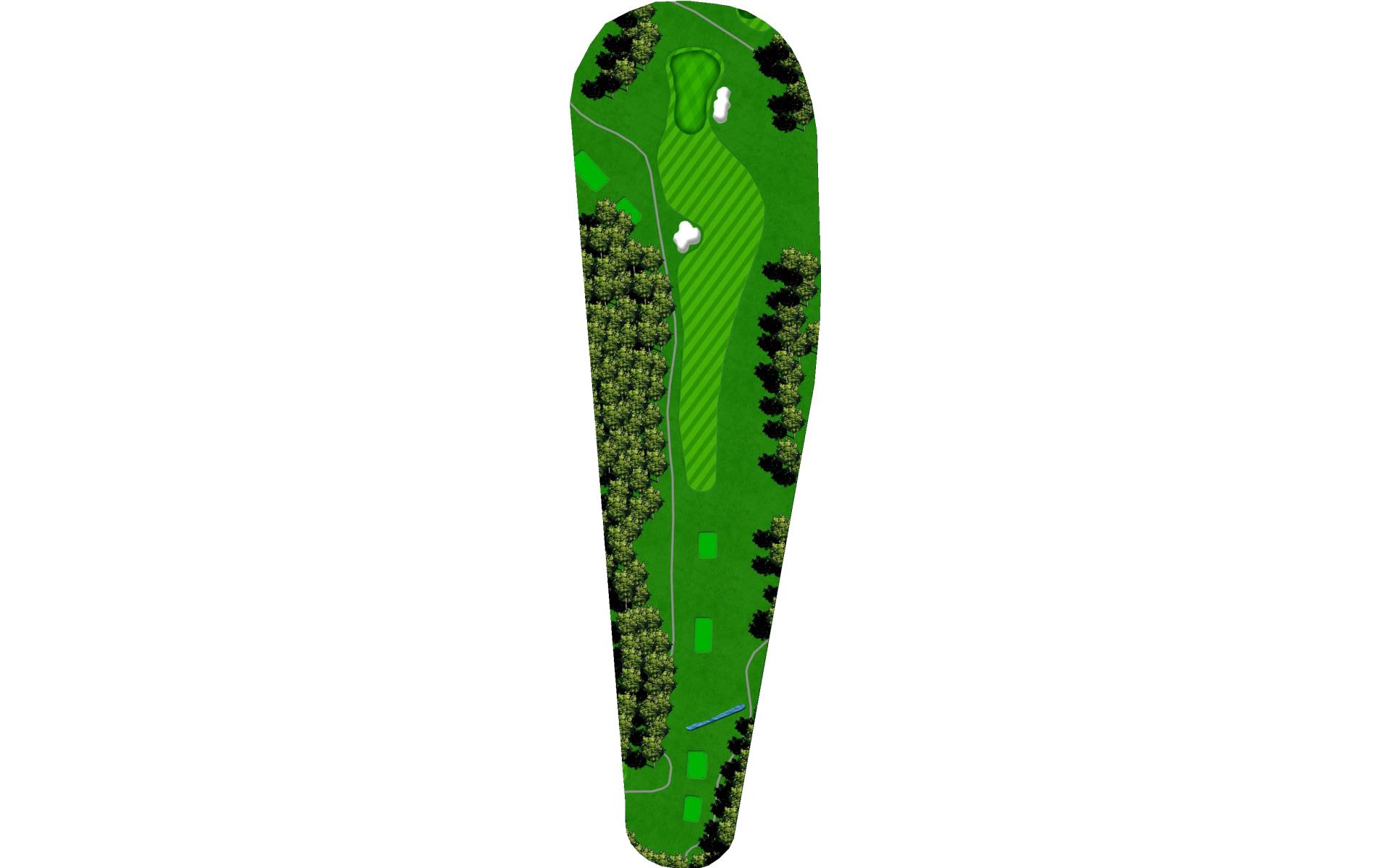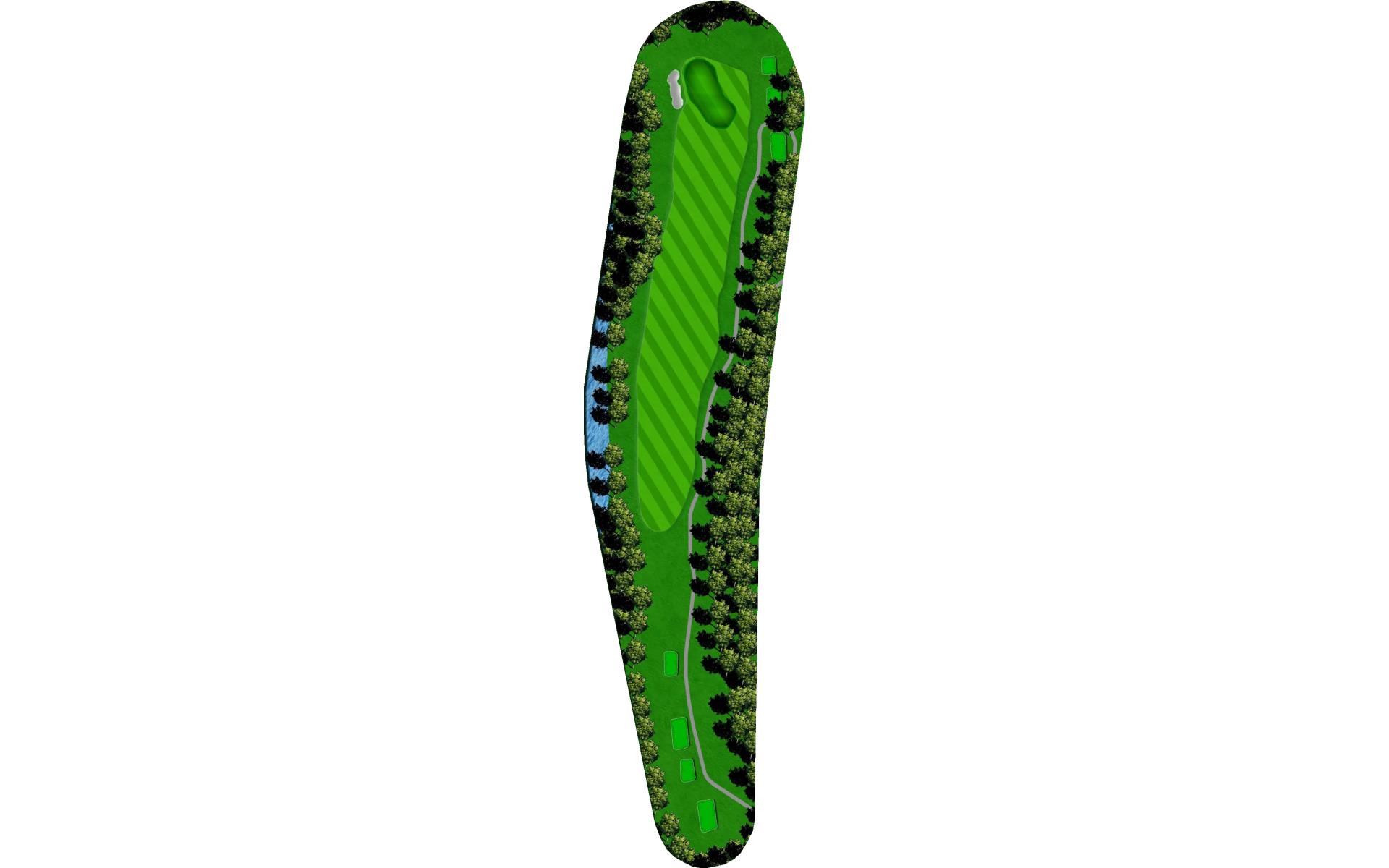 Drive it straight at the telephone pole through the fairway. There’s a slight dogleg left with a green that slopes severely back to front.