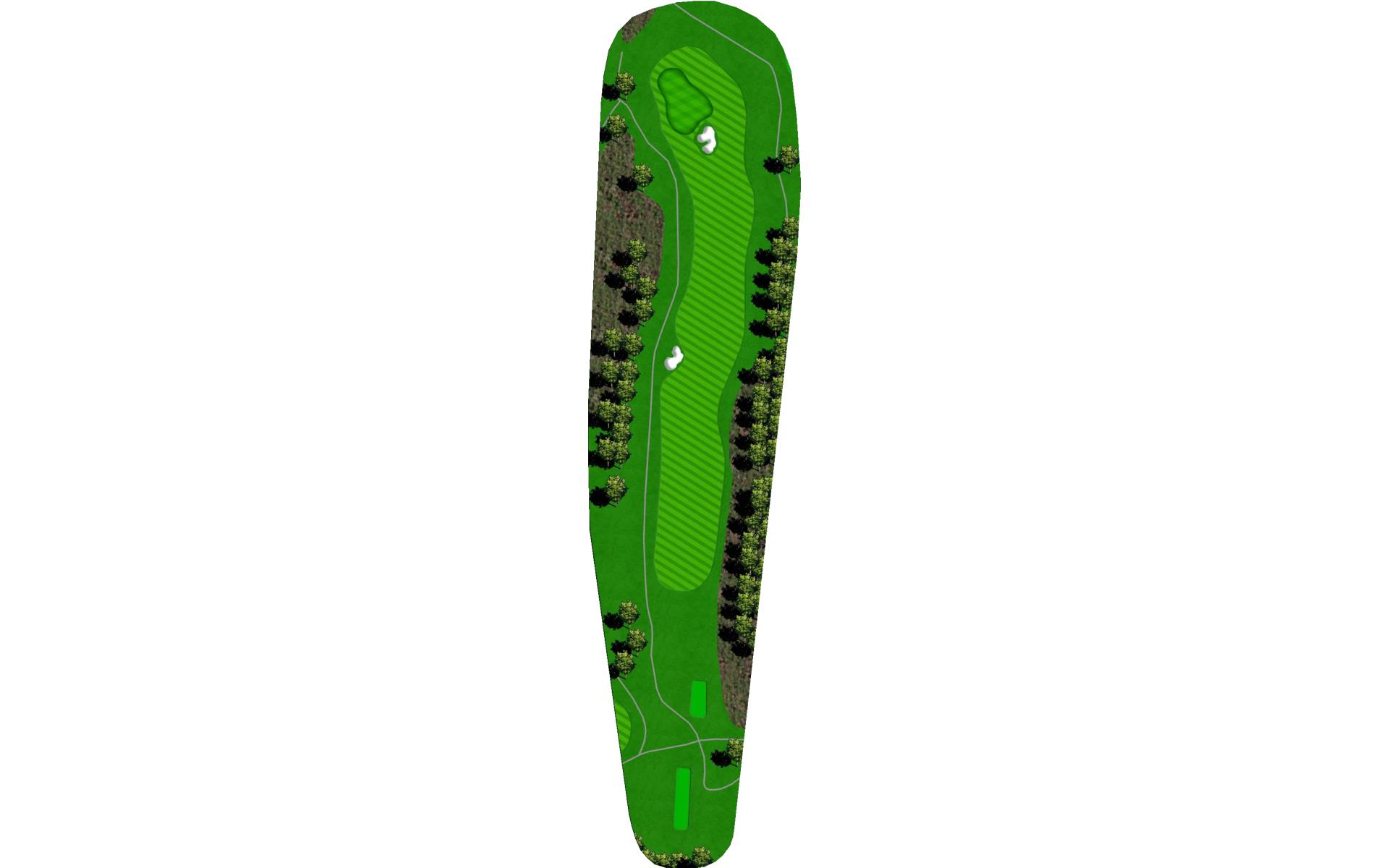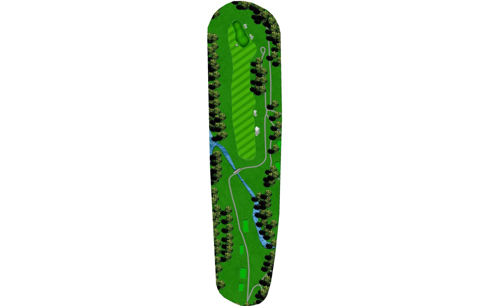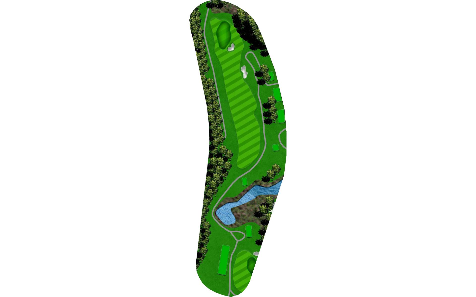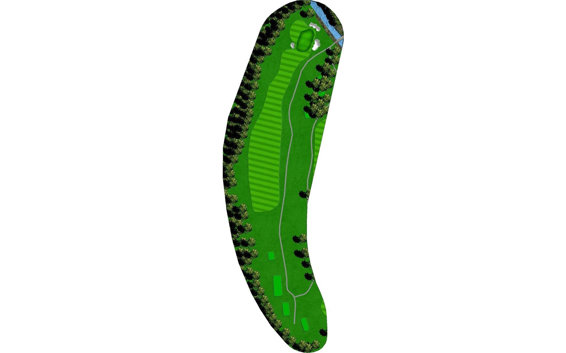 Drive it straight at the telephone pole through the fairway. There’s a slight dogleg left with a green that slopes severely back to front.