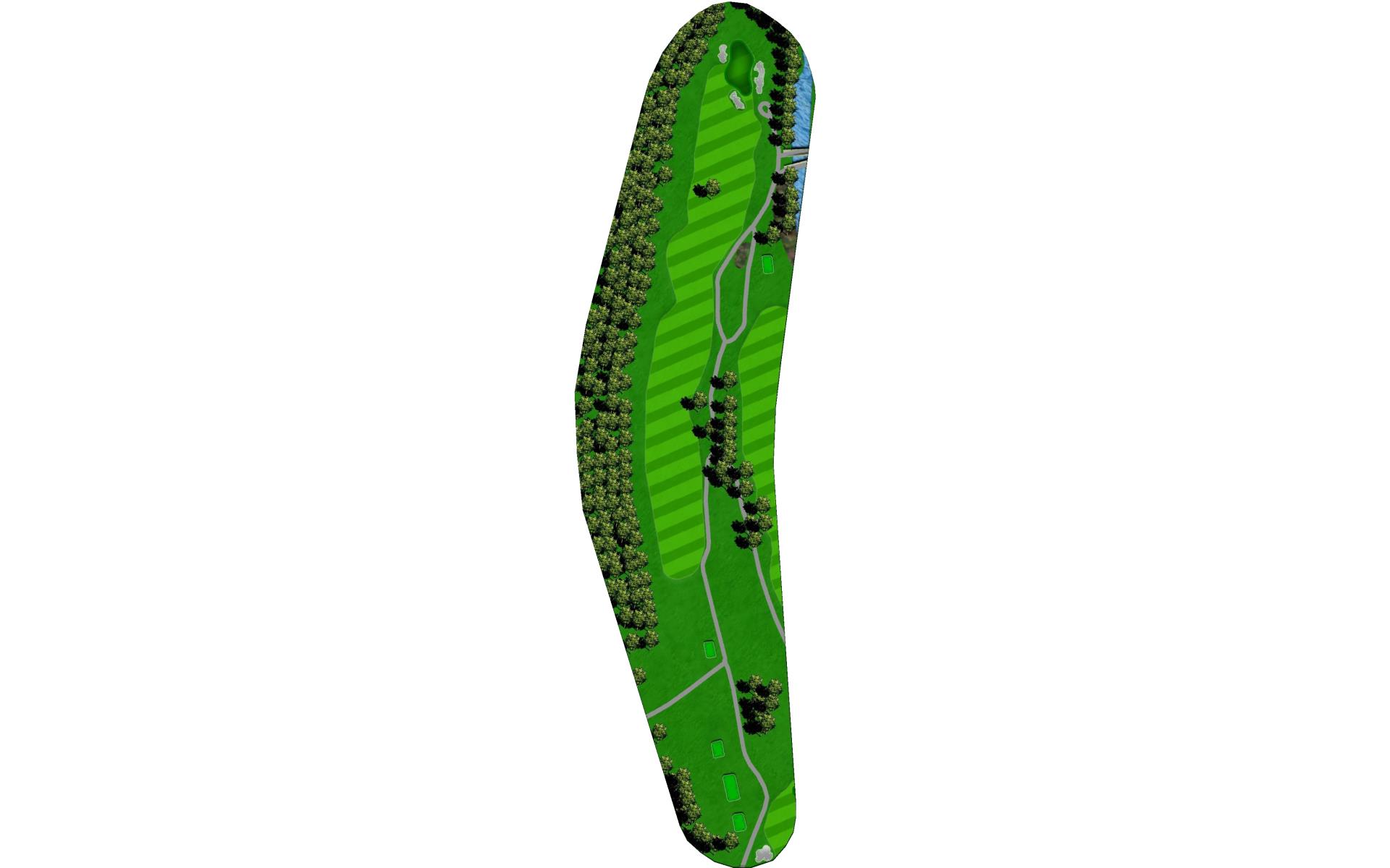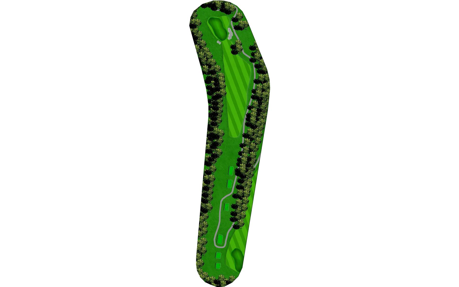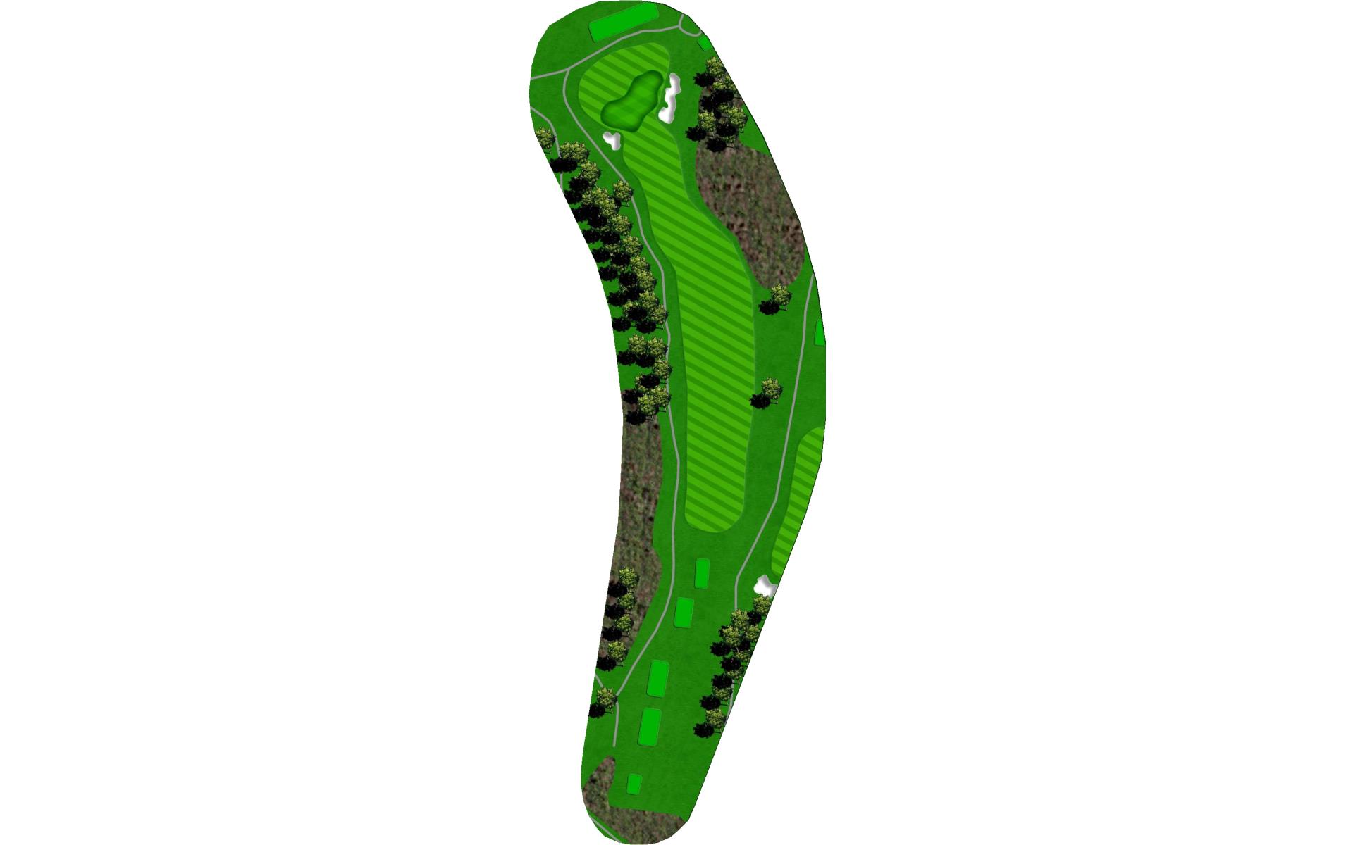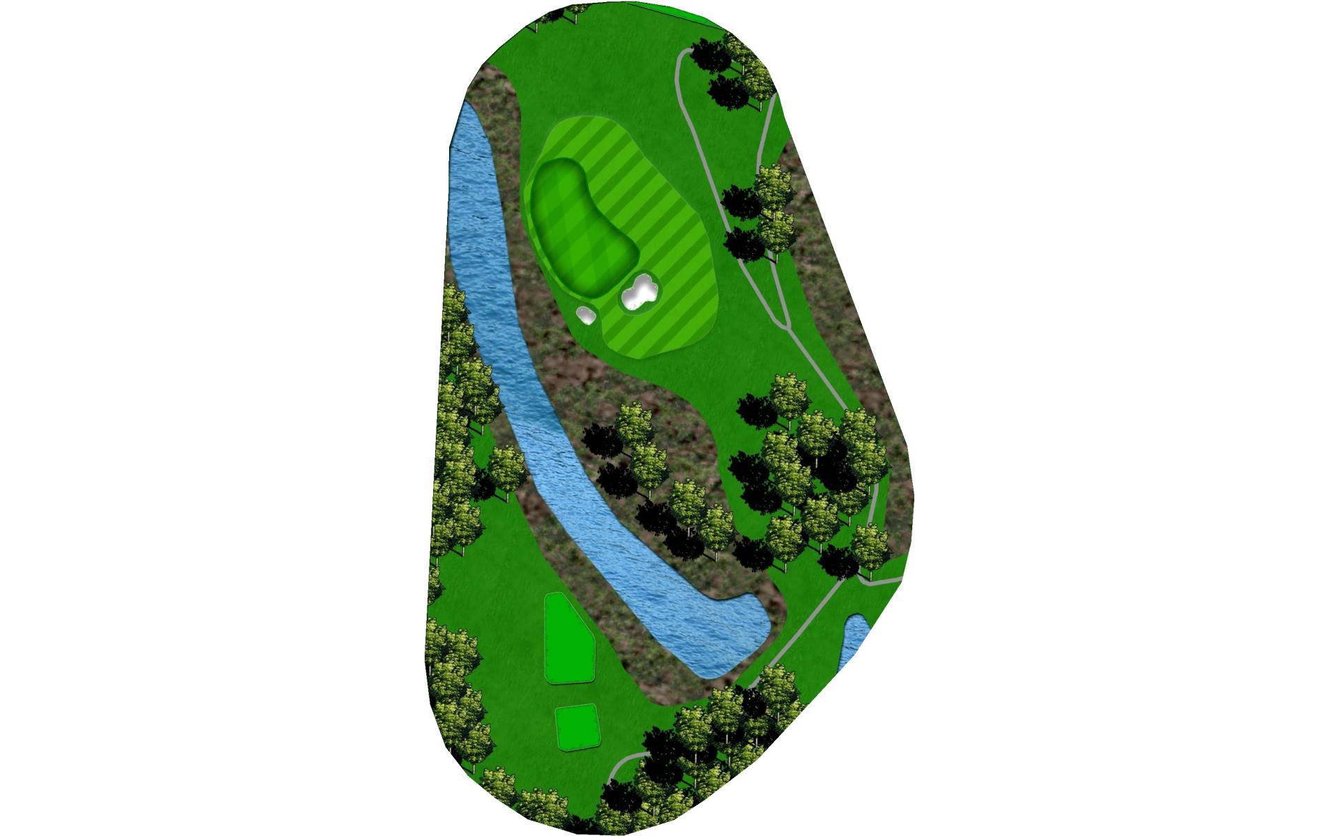 Drive it straight at the telephone pole through the fairway. There’s a slight dogleg left with a green that slopes severely back to front.