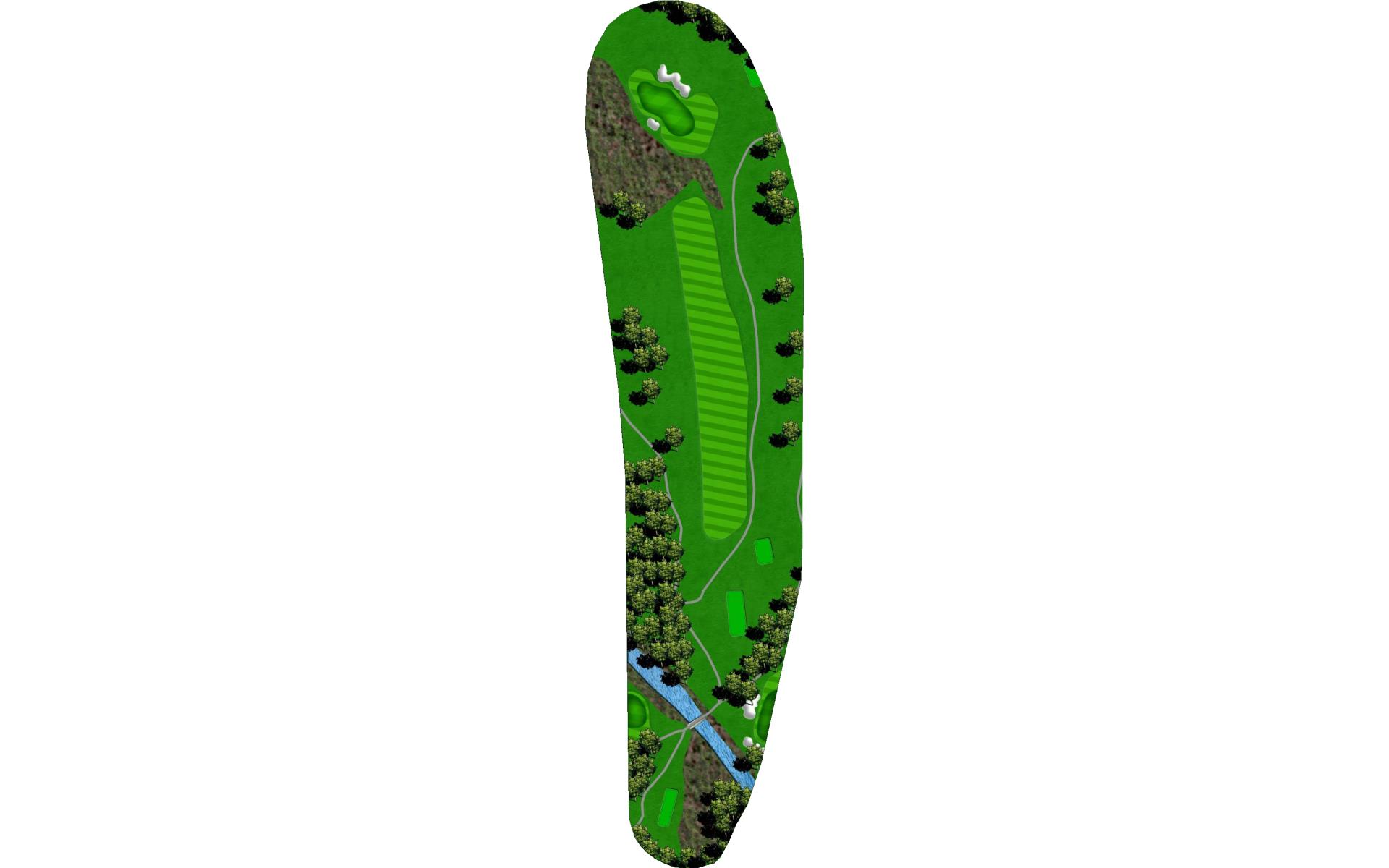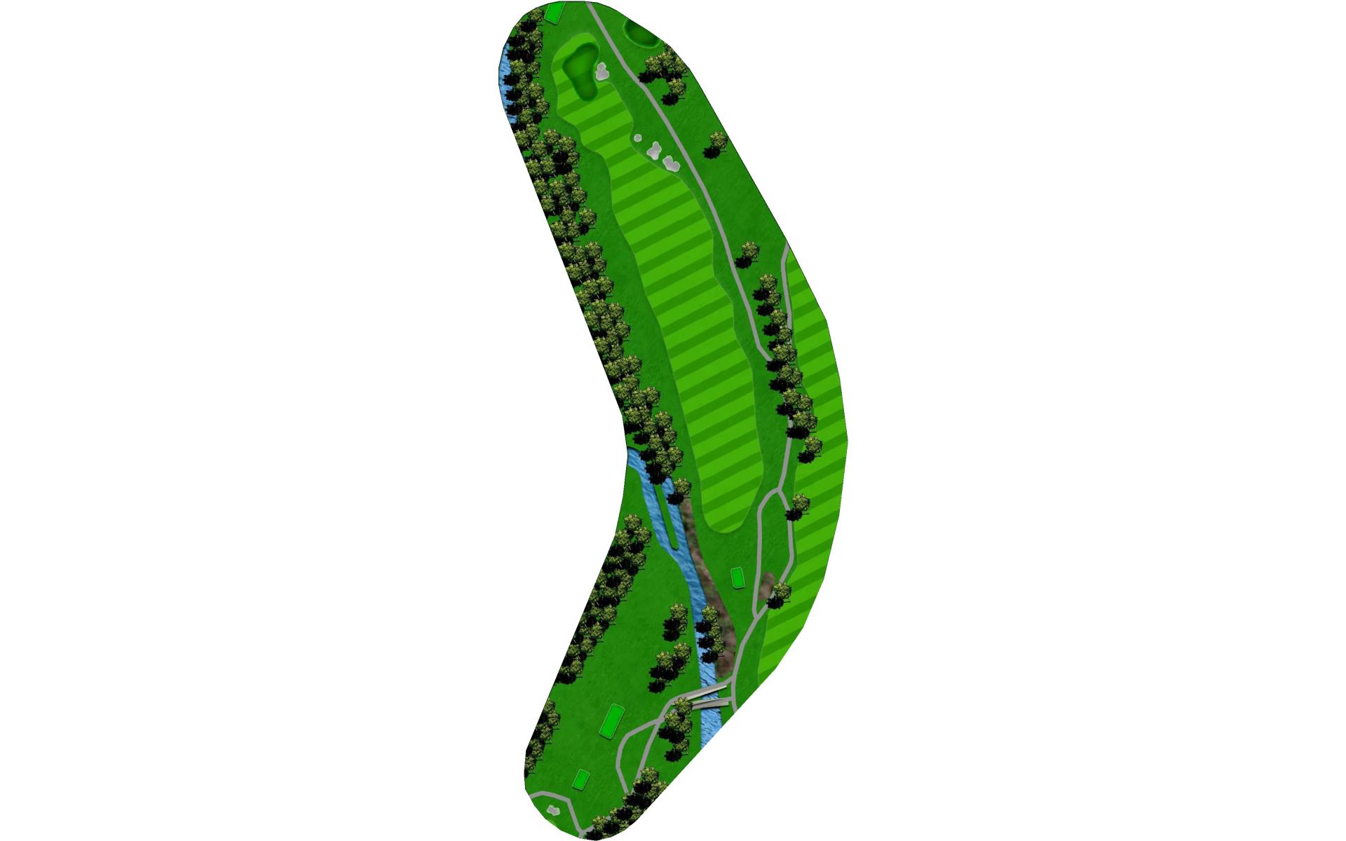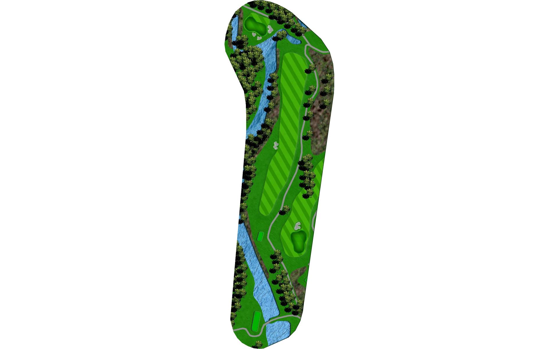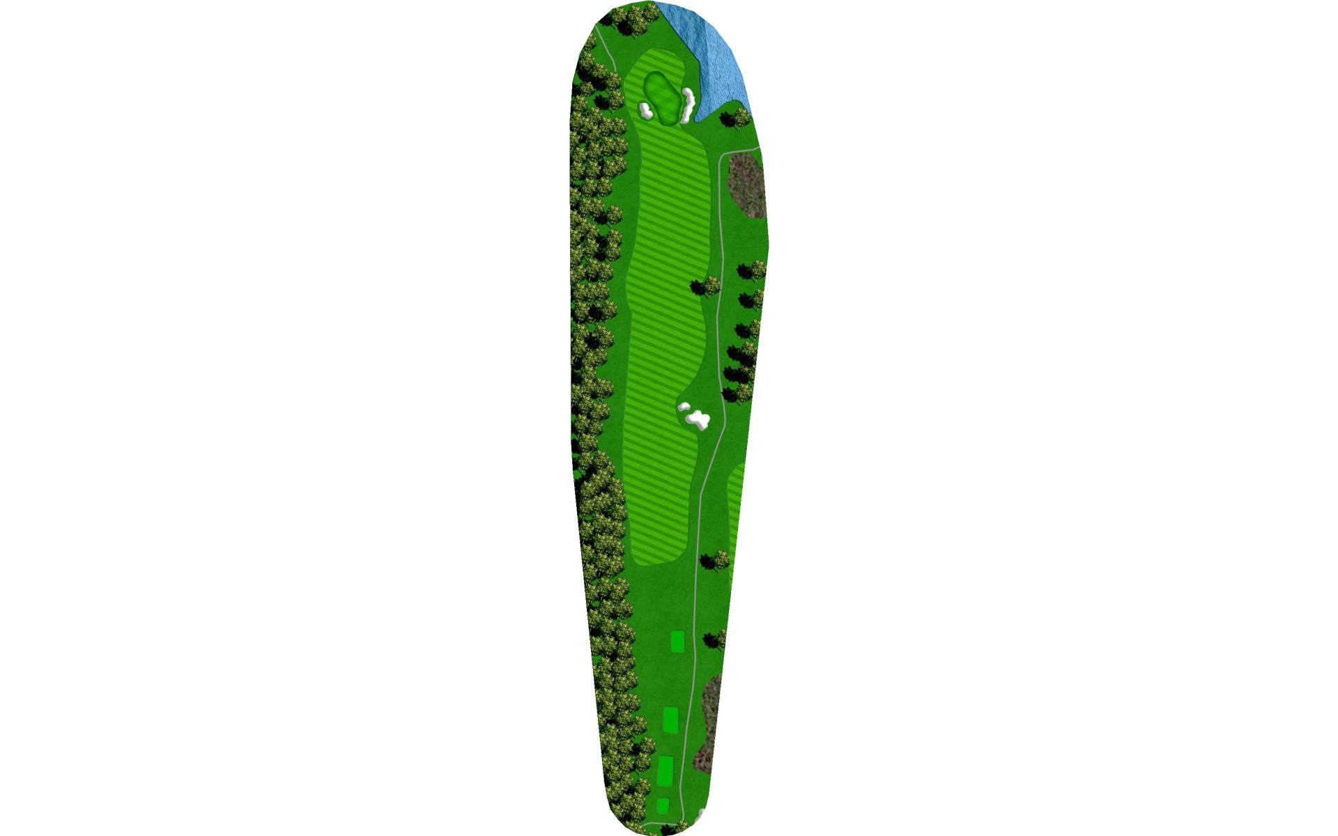 Drive it straight at the telephone pole through the fairway. There’s a slight dogleg left with a green that slopes severely back to front.